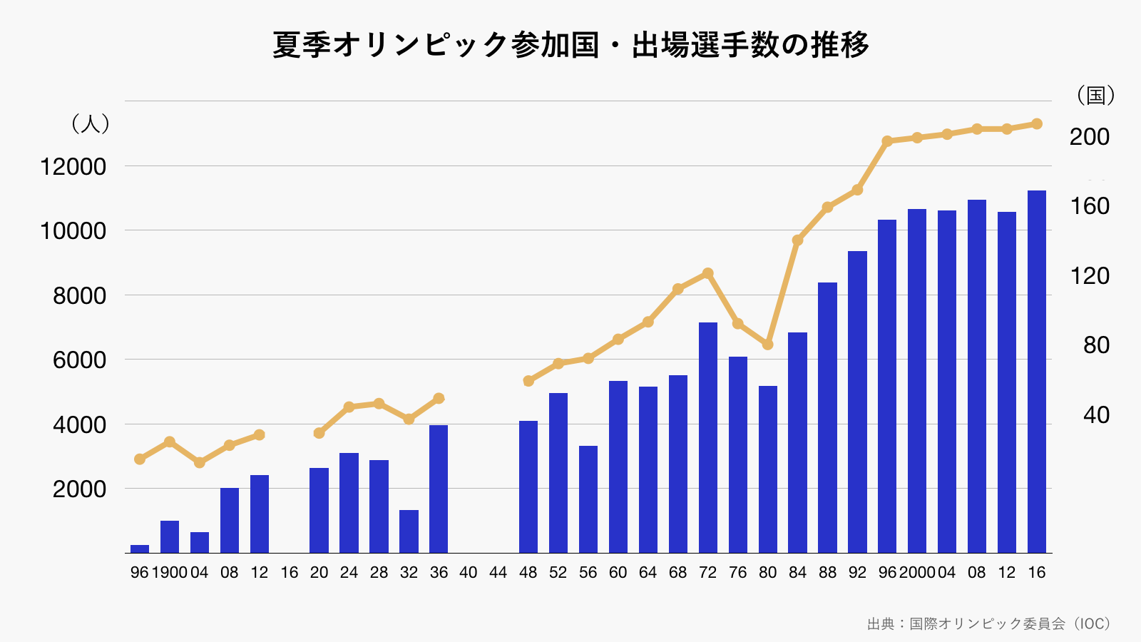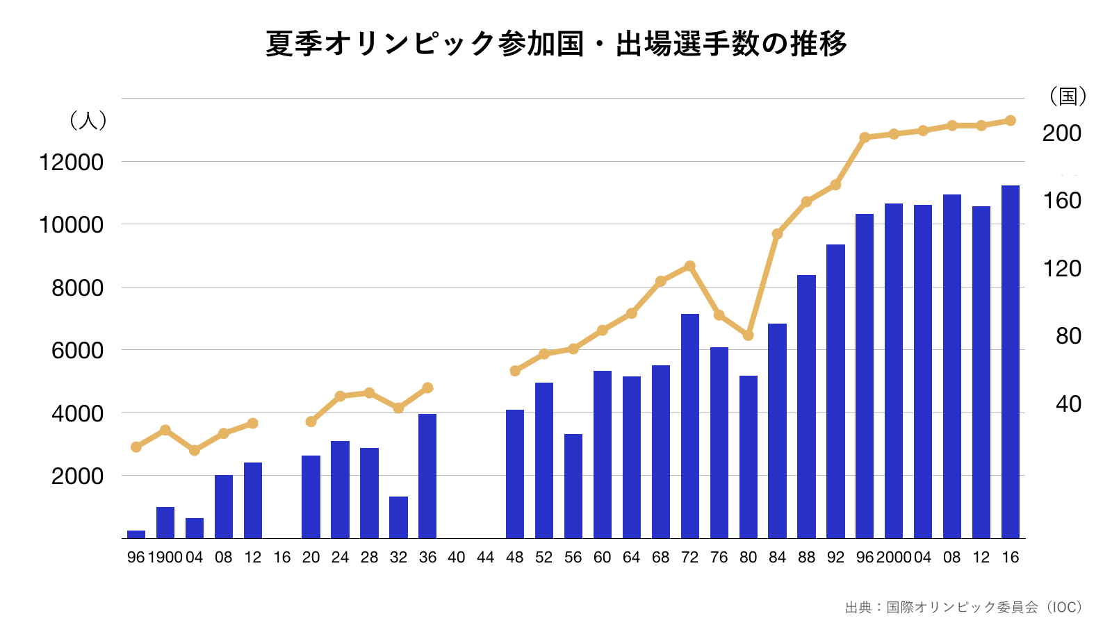 夏季オリンピック参加国・出場選手数の推移のグラフ